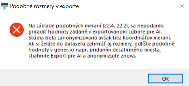 V prípade, že sa pomýlite, stačí zmeniť vo formulári generia vstup, ktorý bol chybný a stlačiť „Export pre AI“ znova a dať opätovne „Anonymizovať“ v generio workflow. Dataset sa vždy prepíše novým datasetom.